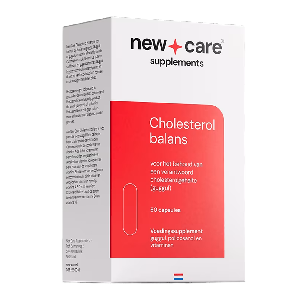 New Care  Cholesterol Balans ondersteunt de cholesterolspiegel op een natuurlijke manier met guggul, policosanol en vetoplosbare vitaminen (A, D, E en K). De volledig plantaardige ingrediënten, hoge biologische beschikbaarheid en strenge kwaliteitscontrole maken het een betrouwbaar supplement. Het is gemakkelijk in gebruik en geschikt voor vegetariërs, maar vereist wel twee capsules per dag, bevat geen plantensterolen en is iets duurder dan sommige alternatieven.